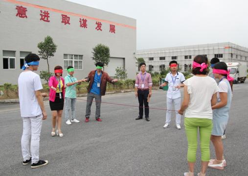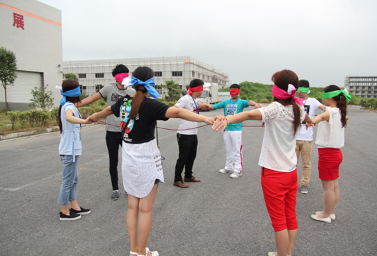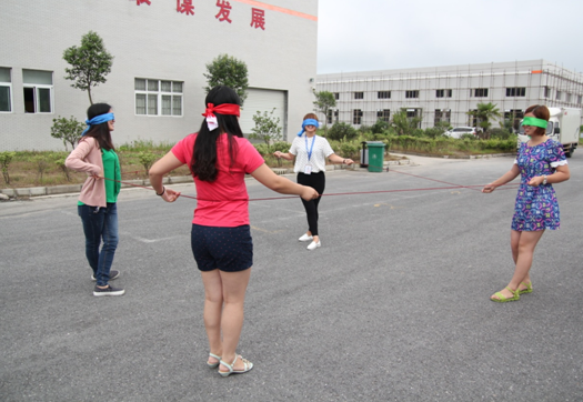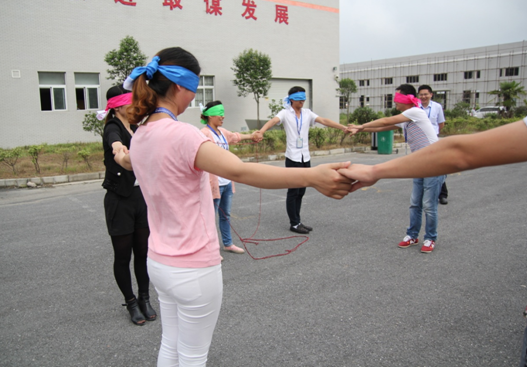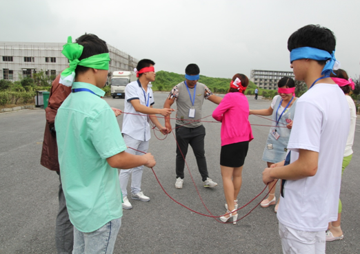 本次拓展游戏是一个团队项目,需要团队中每一个成员的配合才能完成,共分5个队,要求每个队选出一个领导者,通过抽签的方式决定比赛顺序。游戏要求我们每个队员都蒙上眼睛,用给定的绳子在规定的时间内围成一个最大的正方形,最终经过大家的调整磨合,在队长的指挥下,团结合作,集思广益,质量队取得冠军,生产队取得亚军,办公室取得季军。